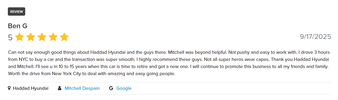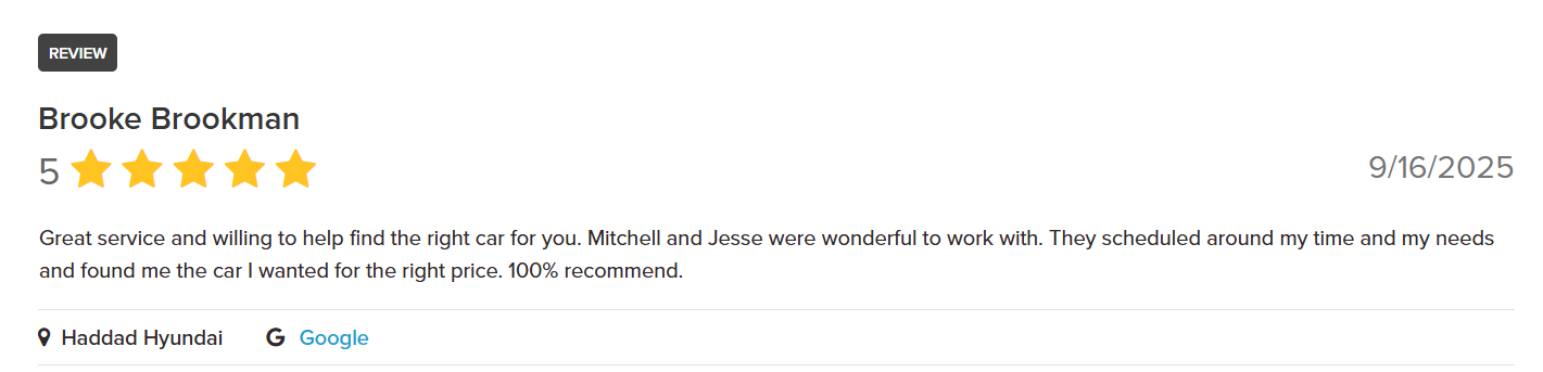 Haddad Hyundai - our Sales Staff, Service Team and Parts Department -